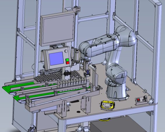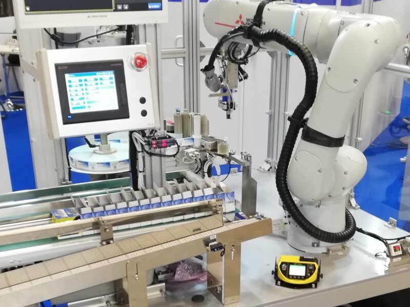 協働ロボットを使用した装置で、自動でカートンケースの組み立てからカートンケースへの挿入後の検査までを一括で行う装置となります。